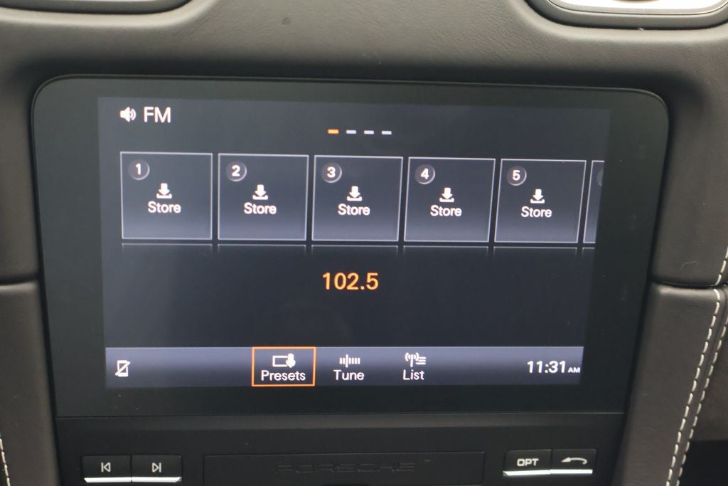 - Radio: Porsche Communication Management (PCM) -inc: Bluetooth® hands-free mobile phone connection, audio interfaces (CD/DVD drive, 11 GB internal jukebox storage, 2 USB slots and 2 SD card slots), SiriusXM radio (w/3-month platinum plan trial), HD Radio receiver, and Porsche Car Connect (including Carfinder, remote vehicle status, remote services and Porsche Vehicle Tracking System (PVTS))